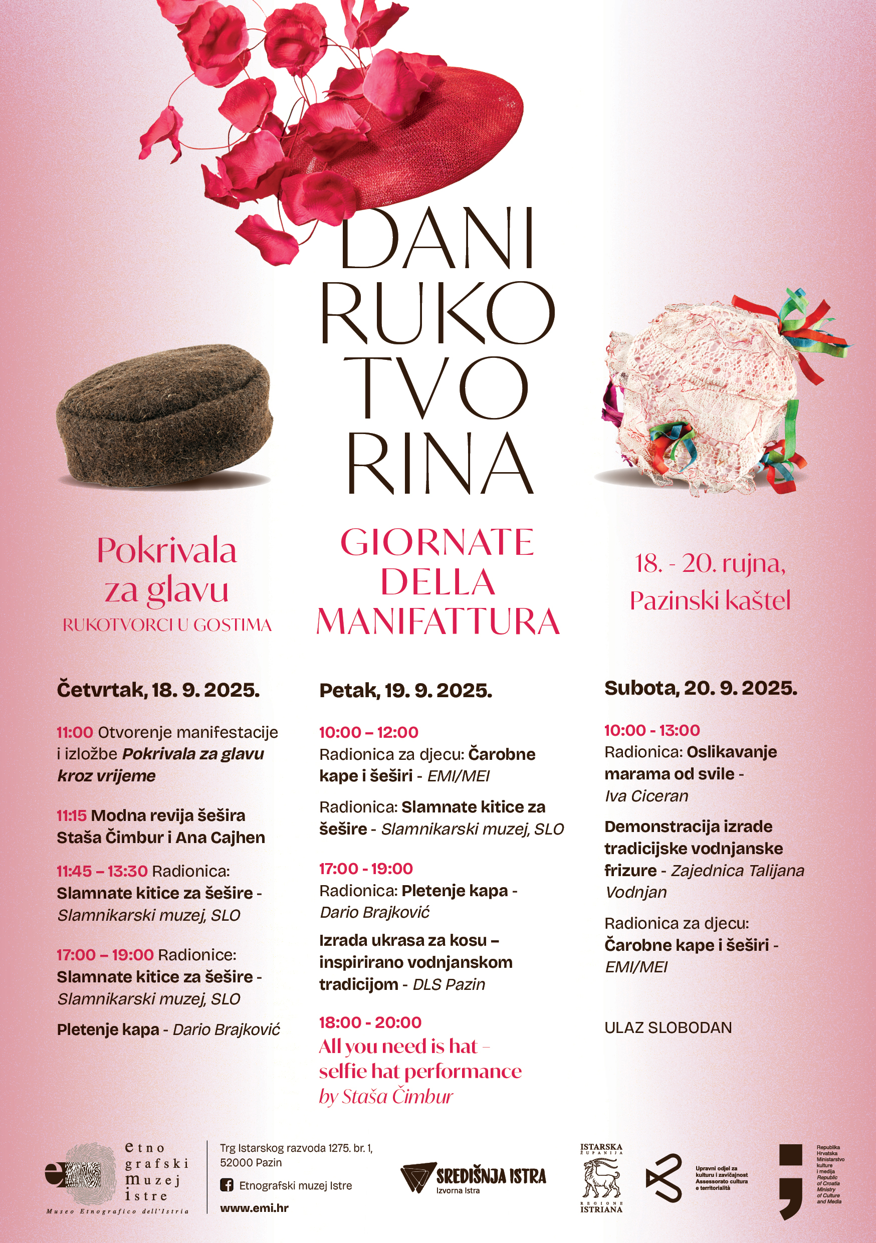 U Etnografskom muzeju Istre-Museo etnografico dell'Istria od 18. do 20. rujna 2025. održava se stručno-edukativna manifestacija Dani rukotvorina.