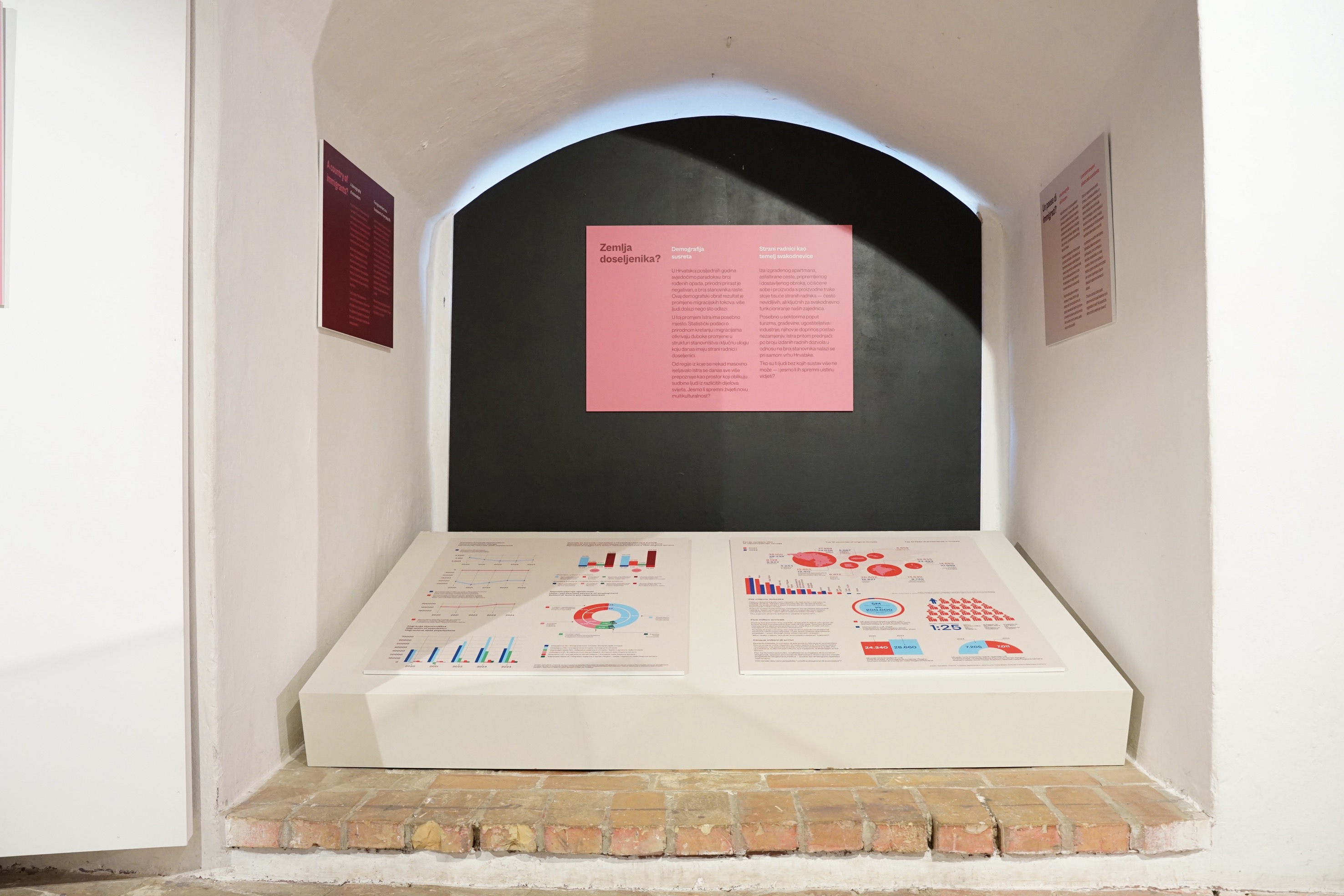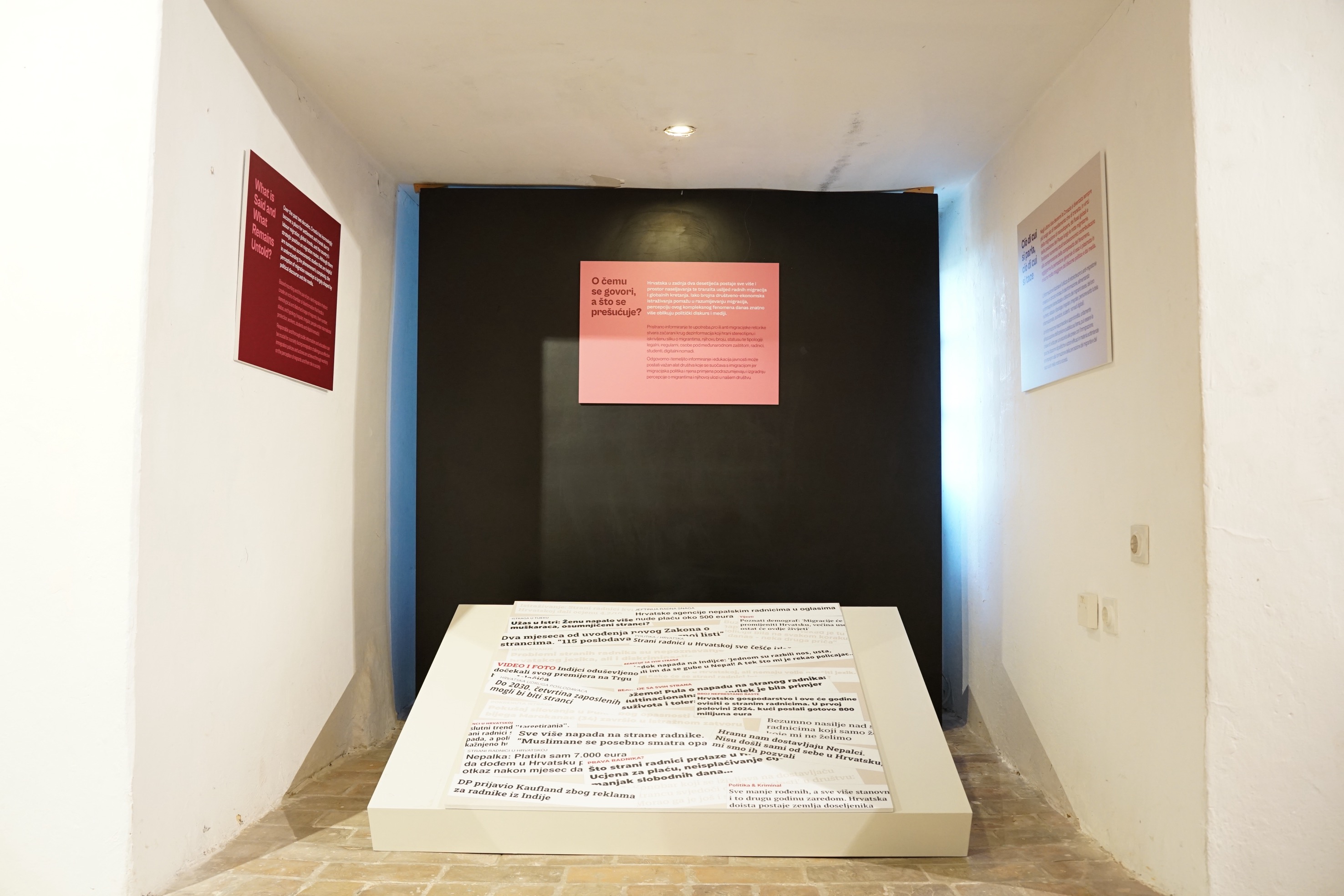 U svom podtekstu izložba govori i o prazninama – manjku zbiljske integracije, dijaloga, razumijevanja, institucionalne podrške, kao i o onome što je izgubljeno ili narušeno: obiteljskom suživotu, jezičnim i kulturnim preprekama, afektivnim krajolicima. To su lice i naličje iskustava brojnih ljudi među nama – naših novih susjeda.