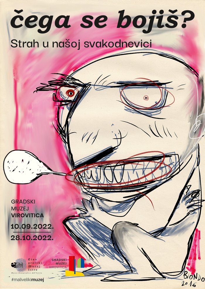 Nakon dvije godine, izložba Etnografskog muzeja Istre Čega se bojiš? Strah u našoj svakodnevici oživjet će u prilagođenom izdanju u prostorima Gradskog muzeja Virovitica. Otvorenje izložbe je u subotu 10.9.2022. s početkom u 19.30 sati. Izložbu će biti moguće posjetiti do 28.10.2022.